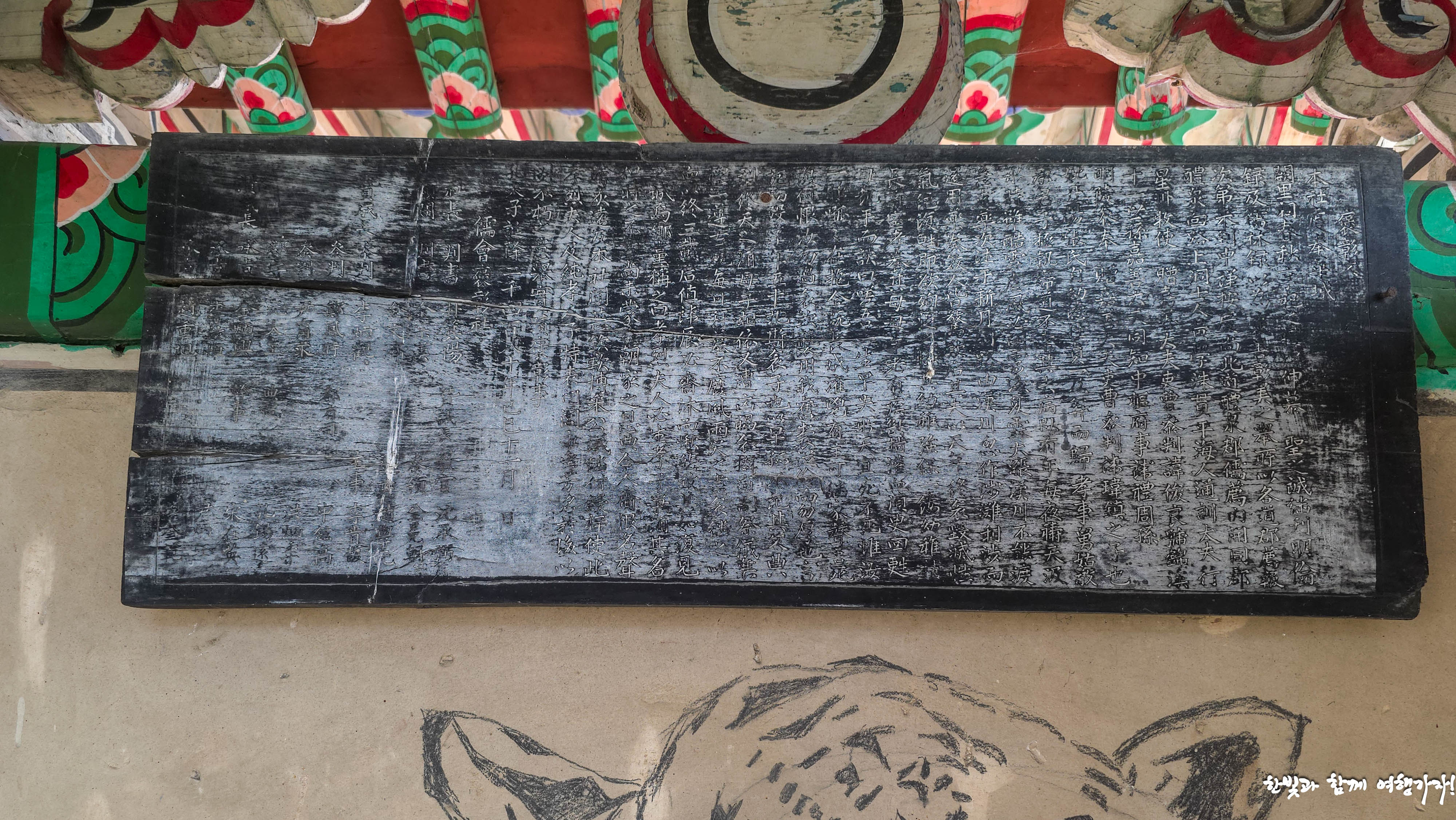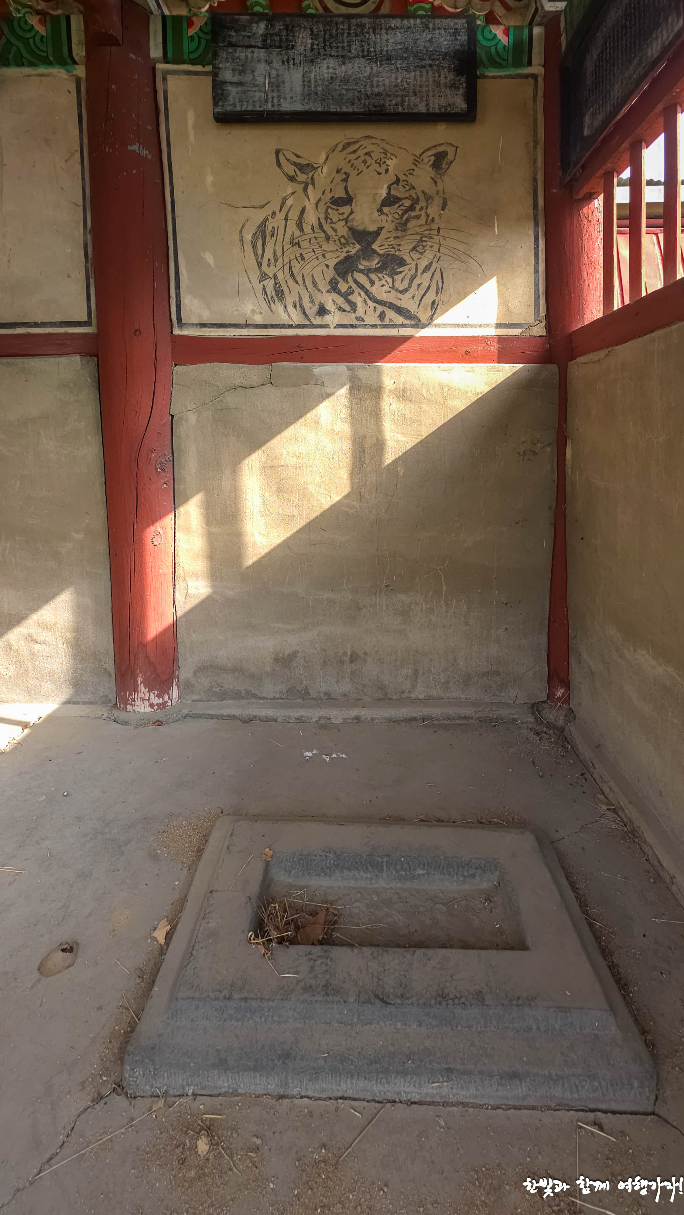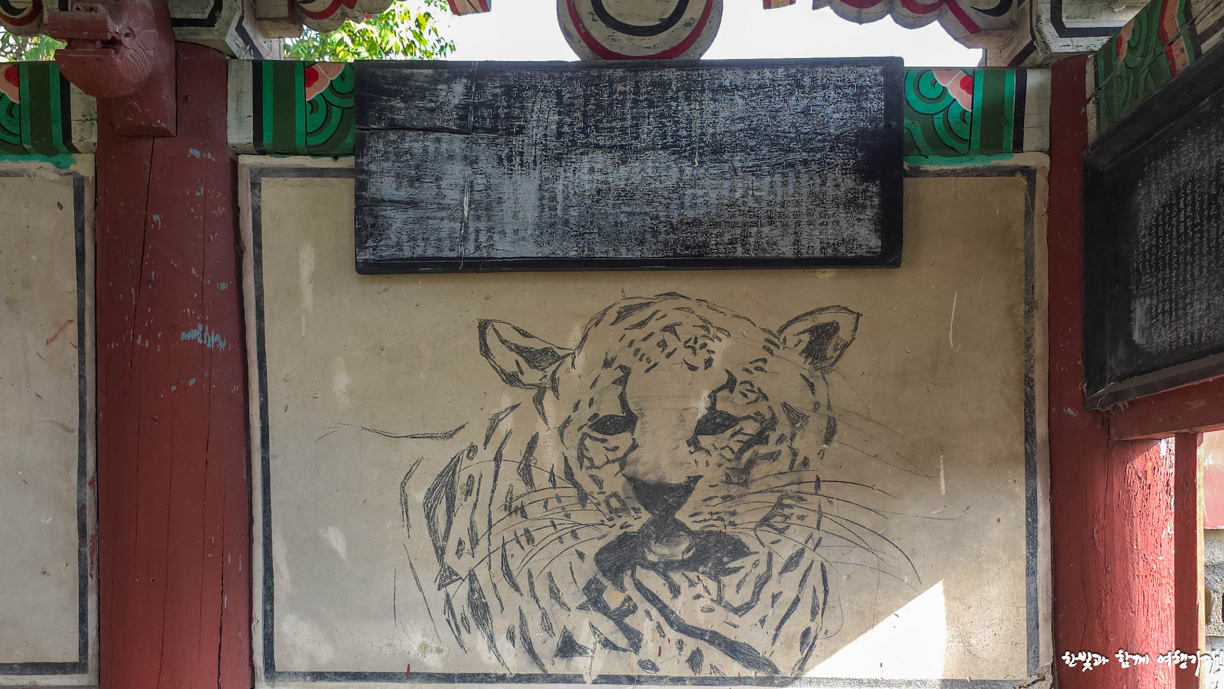 그리고 벽면에는 호랑이 그림도 그려져 있고 또 그 위에 현판이 하나 걸려있었지만 글자도 희미하고 봐도 무언지 알아볼 수도 없겠네요. 혹시 효자각이나 효열각 이야기에 자주 등장하는 은혜 갚는 호랑이 이야기와 관련된 건 아닌가? 하는 추측만 해 봅니다.