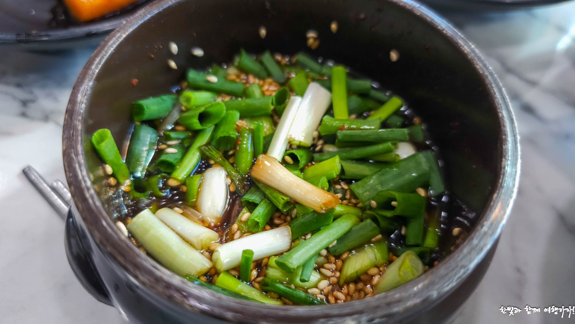 쪽파를 숭덩숭덩 썰어서 넣은 양념간장입니다.