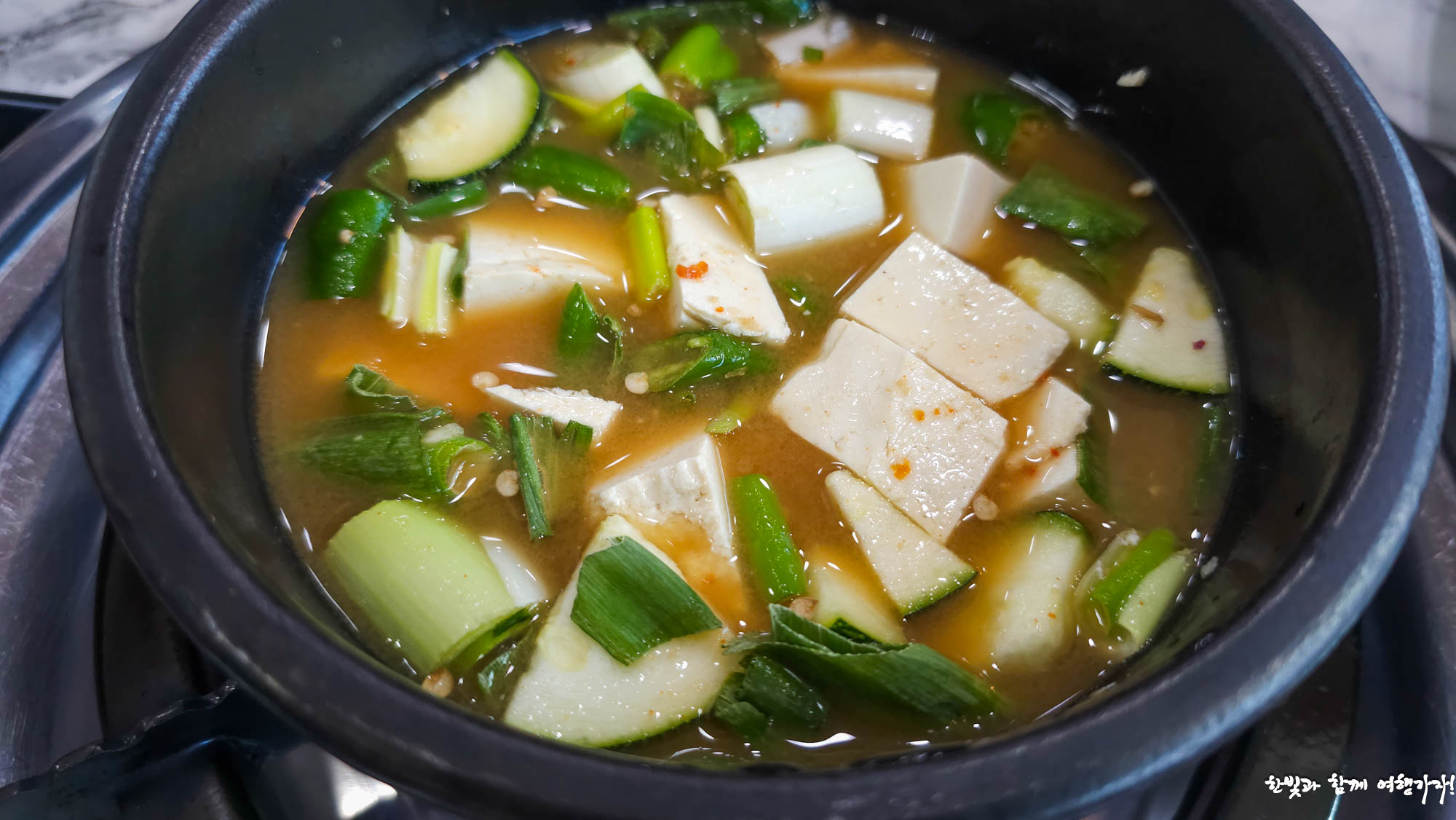 바삭하고 부드러운 부침개도 나왔는데 마치 채소튀김을 먹는 맛이 났어요. 이거 집에 와서도 또 생각나더군요. 하하하!