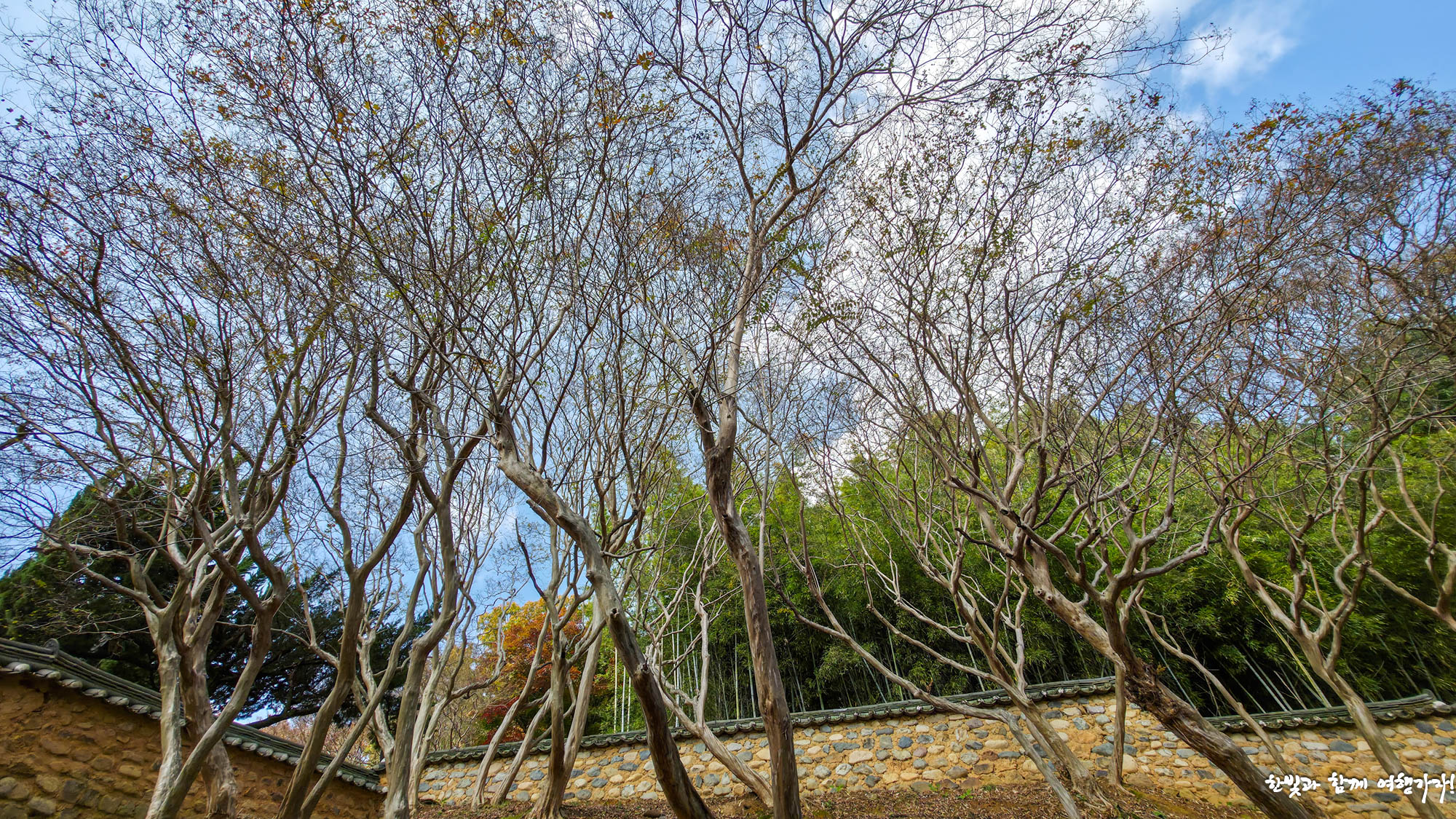 명륜당 뒤쪽으로 돌아가니, 역시나! 배롱나무가 뒤뜰에 가득했습니다. 그것도 명륜당을 굽어보며 자라고 있었네요. 이러니 여름에는 배롱나무꽃이 활짝 필 때면, 얼마나 예쁠지 상상이 됩니다.