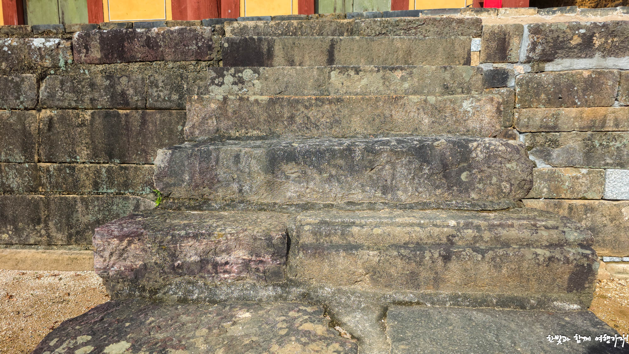 서무 기단 위에 놓인 댓돌은 둥근 나무를 잘라서 만들었네요.