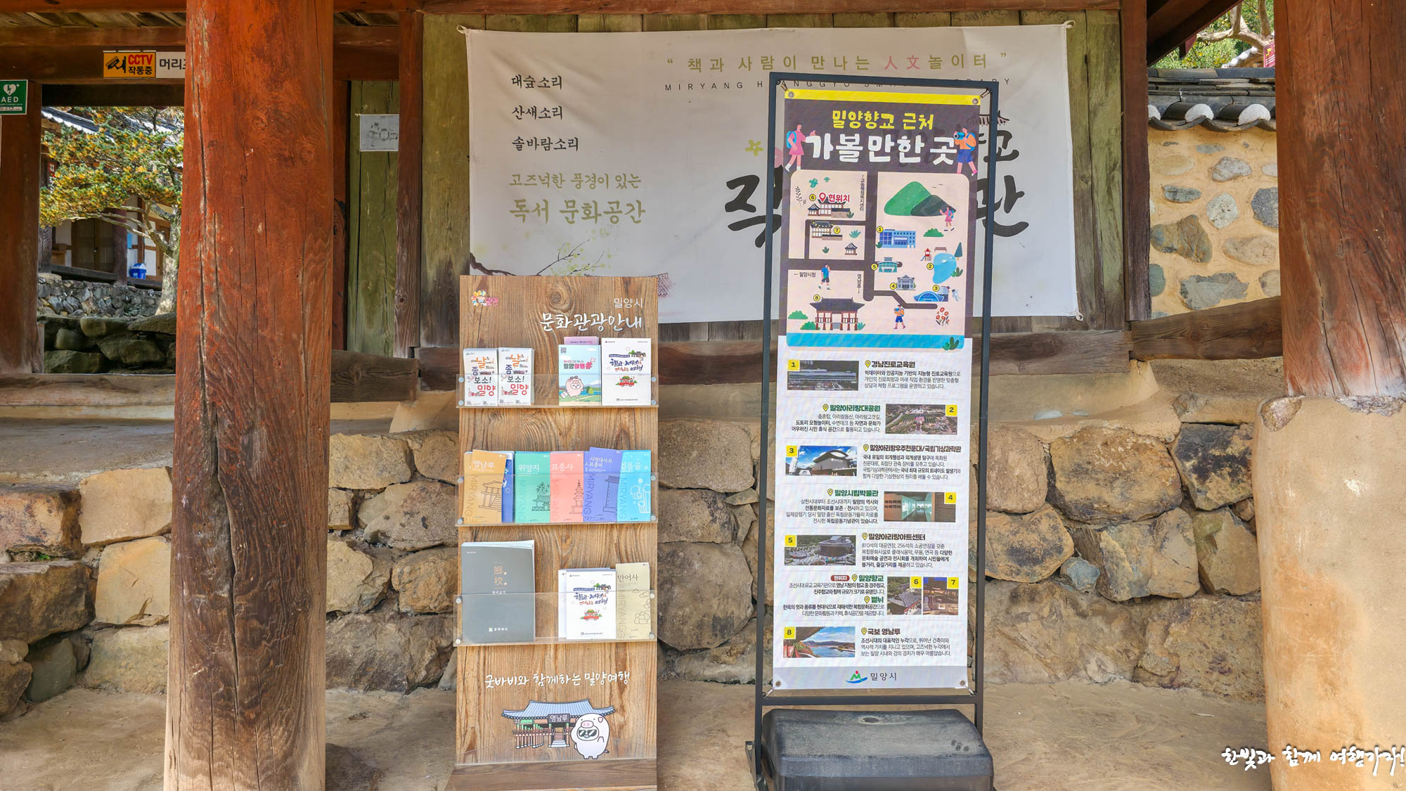 관광 안내 책자와 밀양향교 둘레 가볼만한 곳도 잘 소개하고 있습니다. 무엇보다 반가운 건 향교 문이 활짝 열려 있다는 겁니다.
