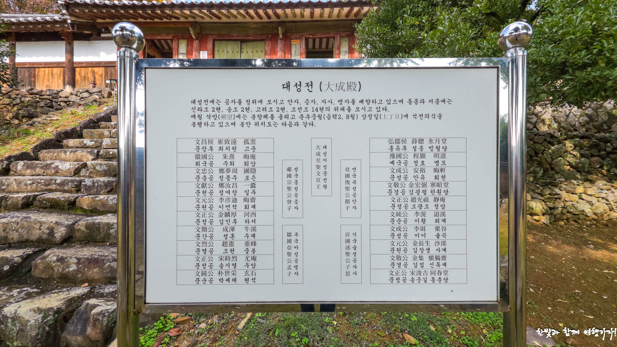 친절하게도 대성전 위패 봉안 위치까지 자세하게 적어서 안내하고 있습니다. 역시 사람 숨결을 반기는 향교로군요. 참으로 고맙네요.