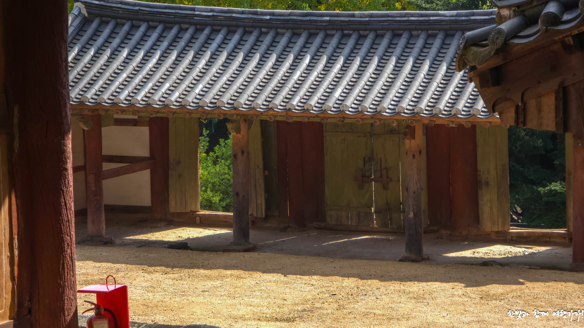 우리는 밀양 손 씨 고가들이 즐비한 곳인 풍화루가 있는 데로 들어왔는데 그 반대쪽에도 향교로 들어가는 길이 따로 있었네요. 이쪽으로는 홍살문도 있습니다. 아마도 여기가 정문이었겠네요.
