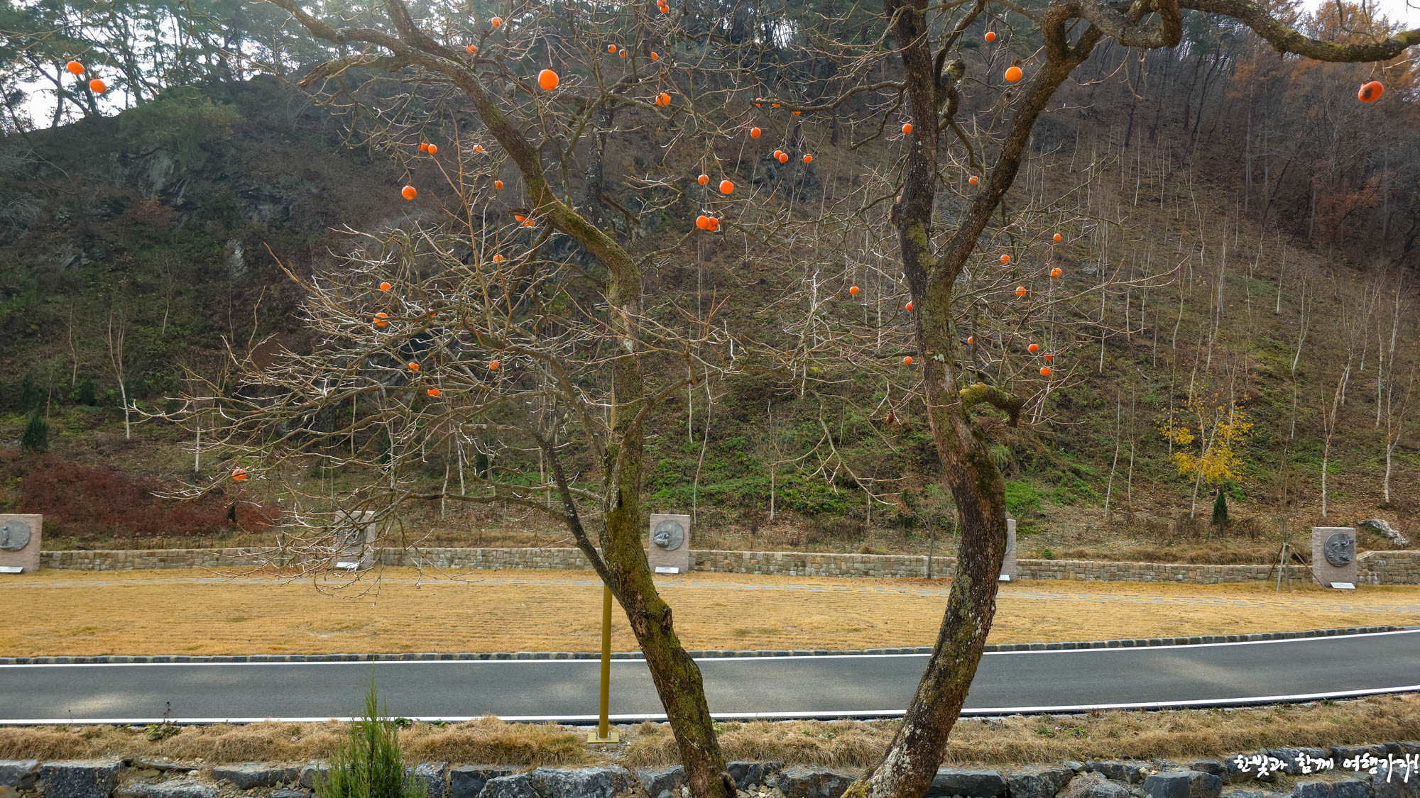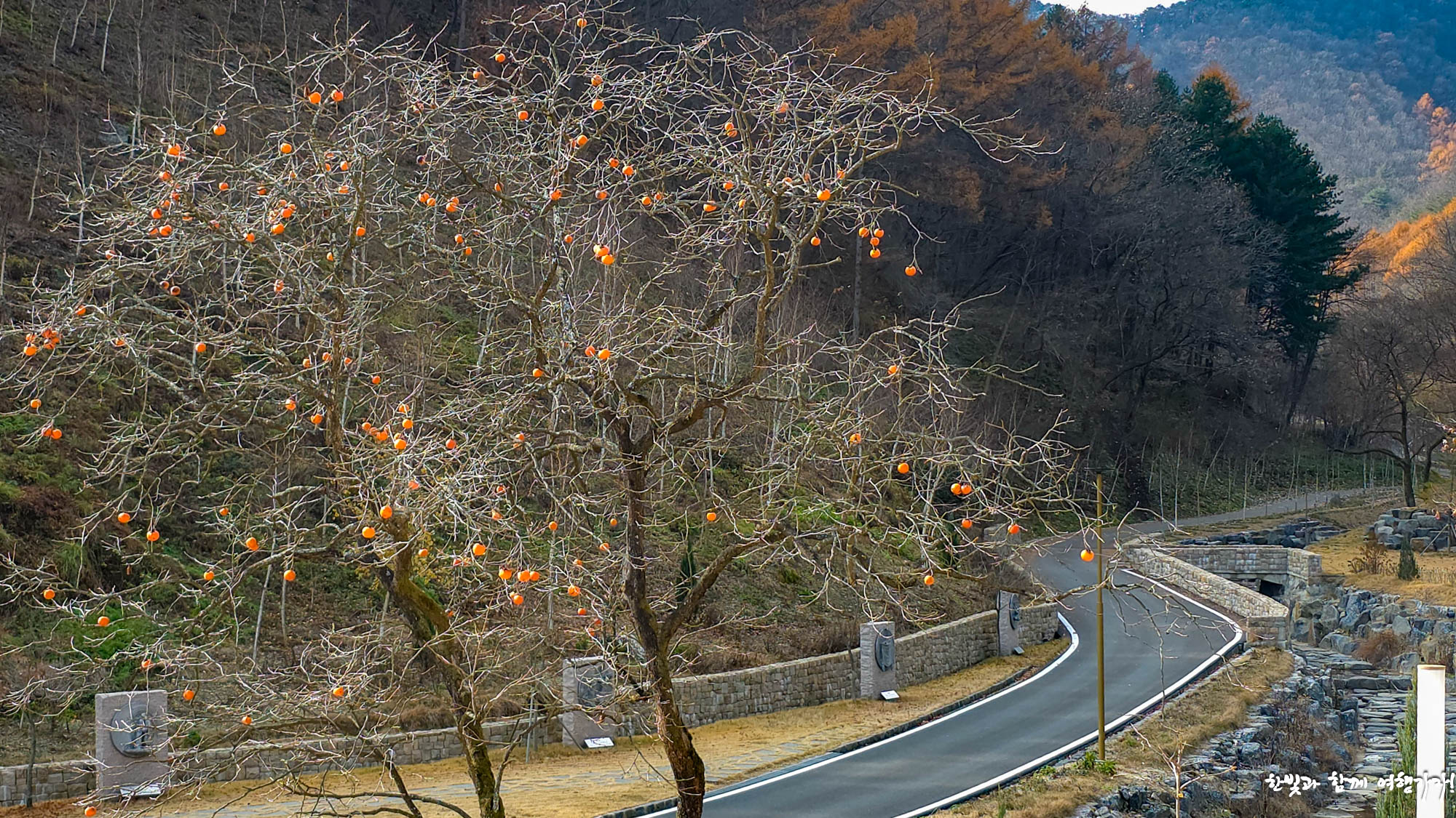 잎사귀를 다 떨구고 홍시만 남아있는 감나무도 예쁘네요.