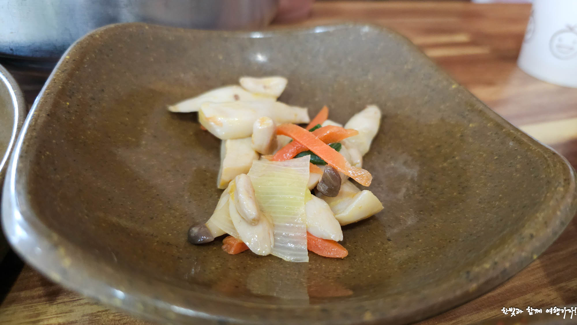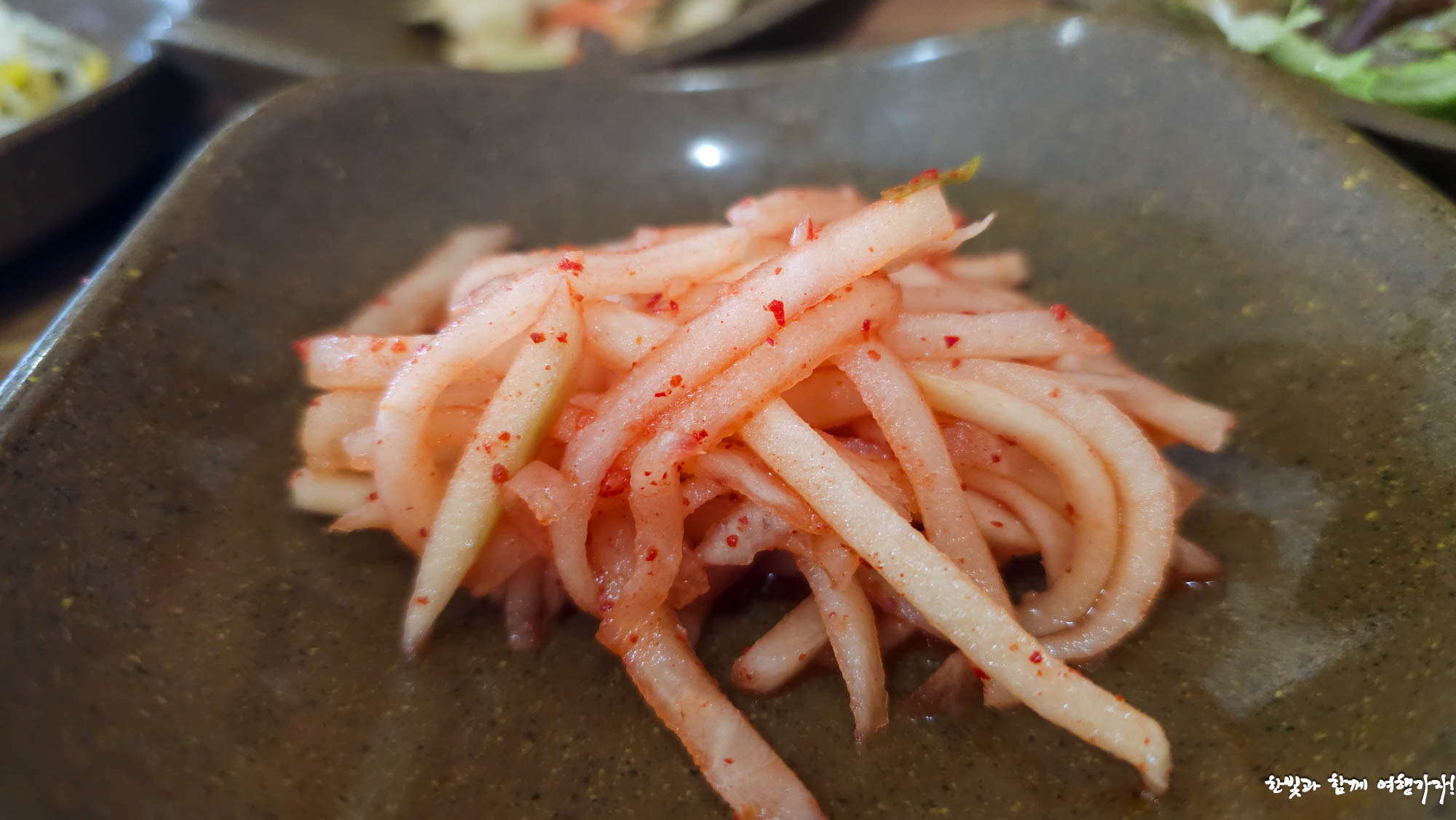 밑반찬으로 나온 무채나물인데 밥 비빌때 같이 넣고 비빕니다.