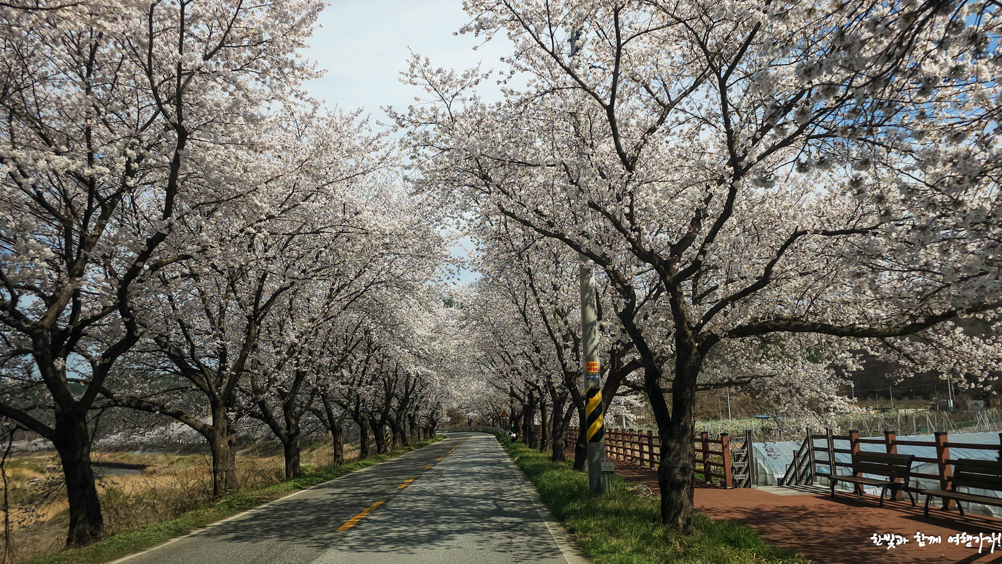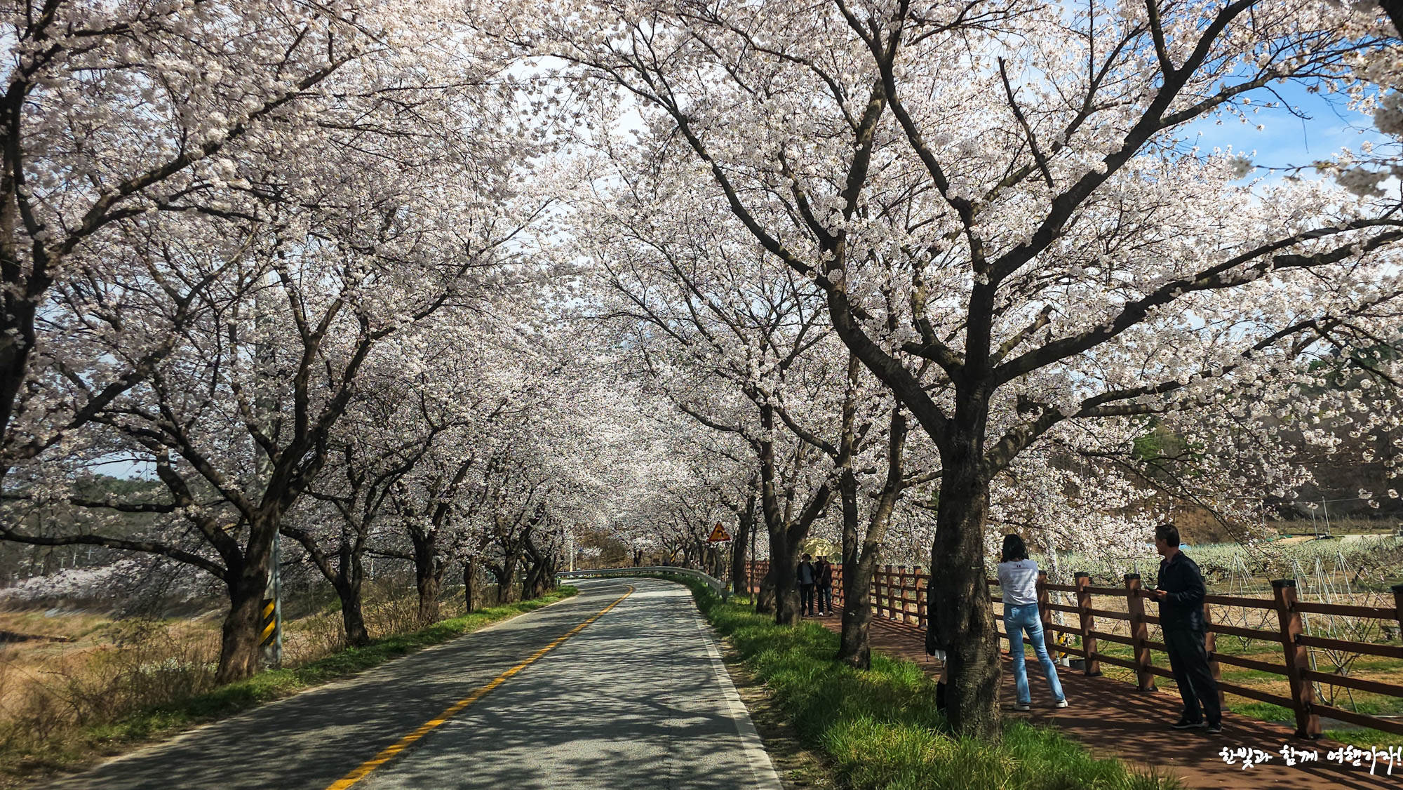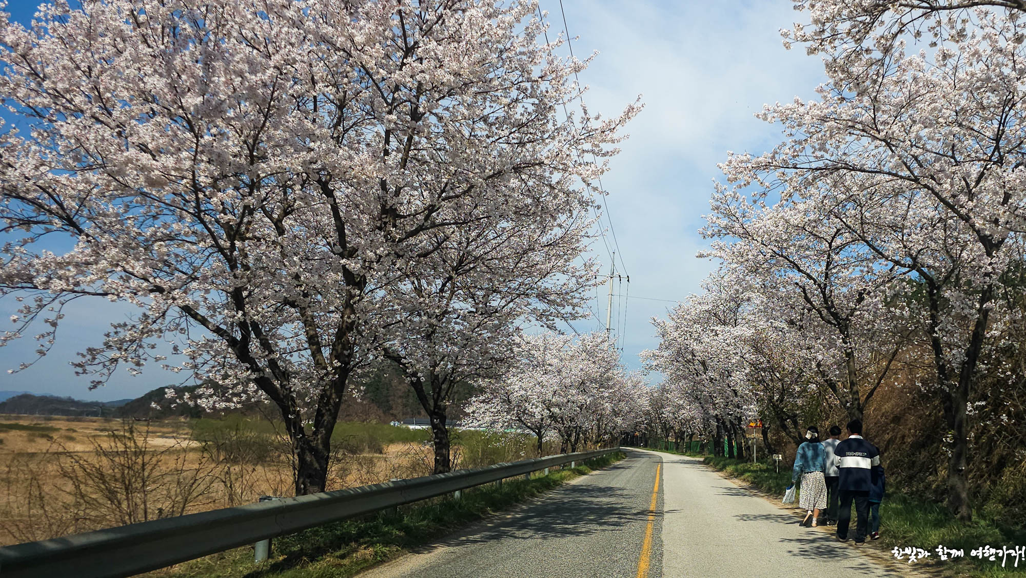강곡리에서 삼산리까지 이어지는 벚꽃길이 거의 십리, 그러니까 4km에 이르는 꽃길이네요.